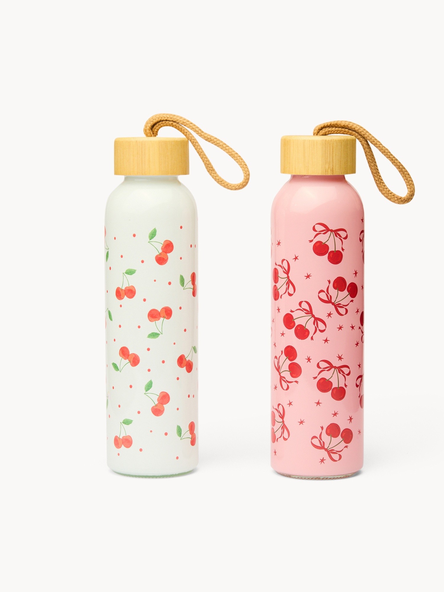 Borraccia in vetro motivo ciliegie - Prezzo di lancio