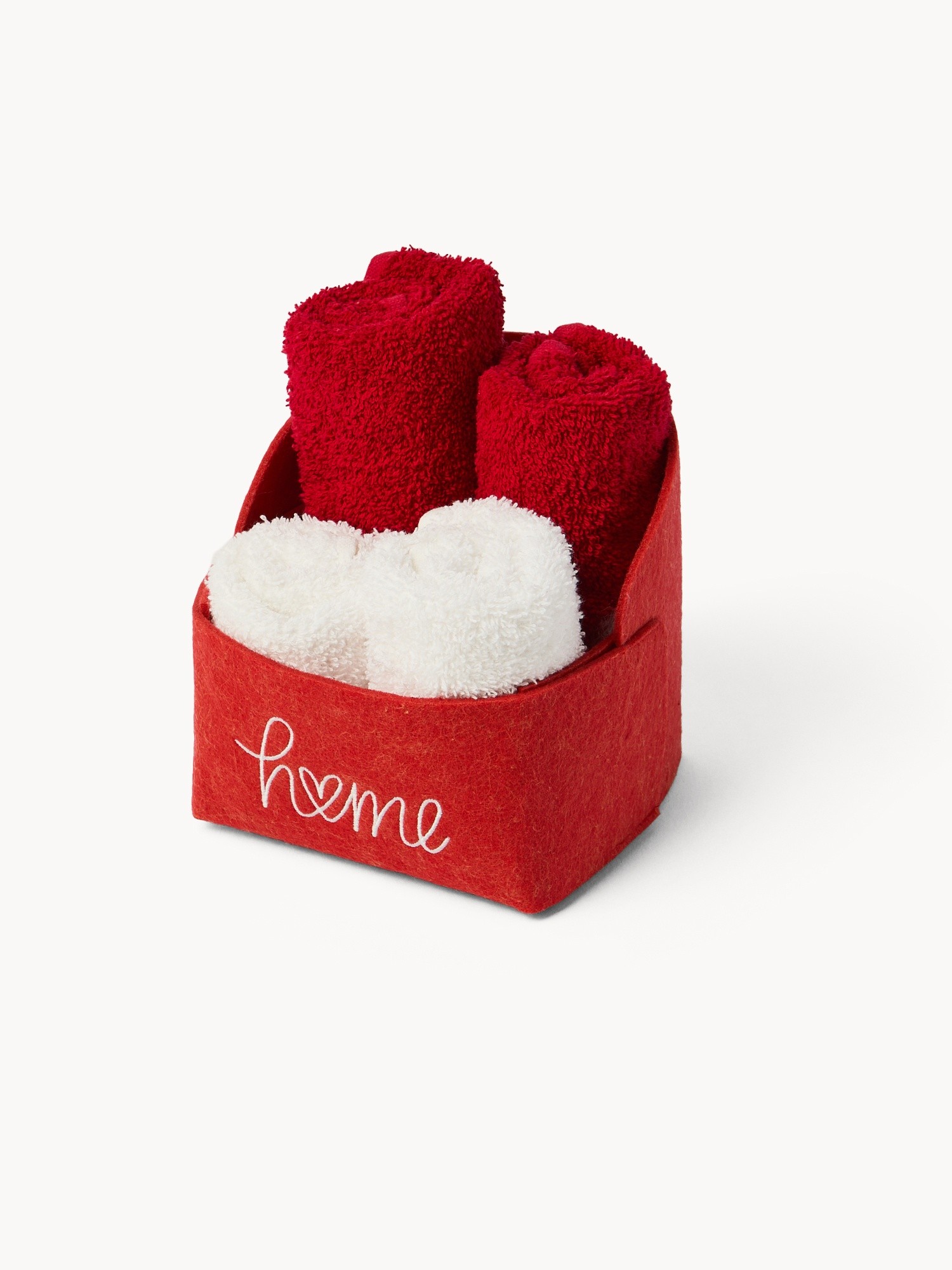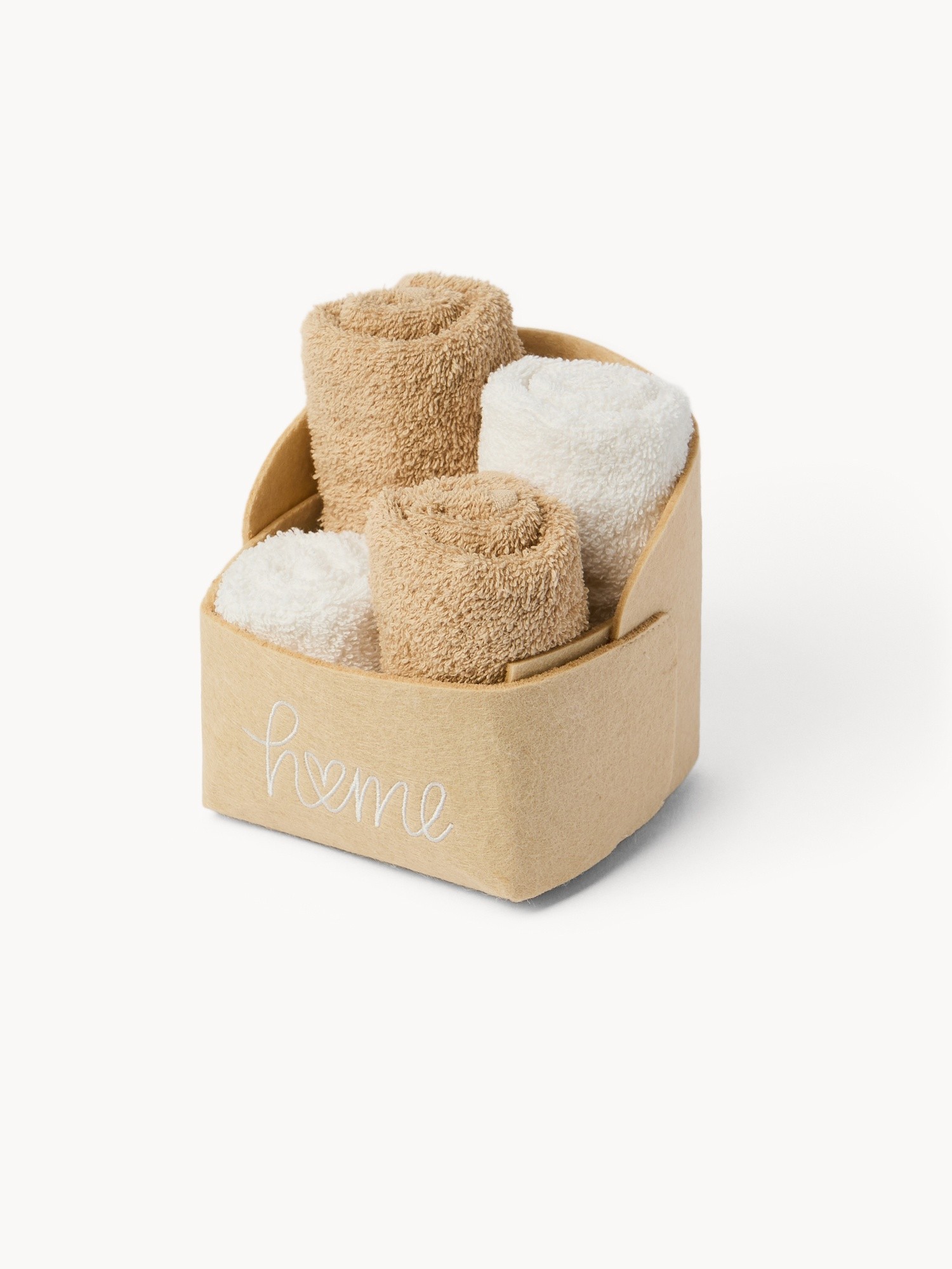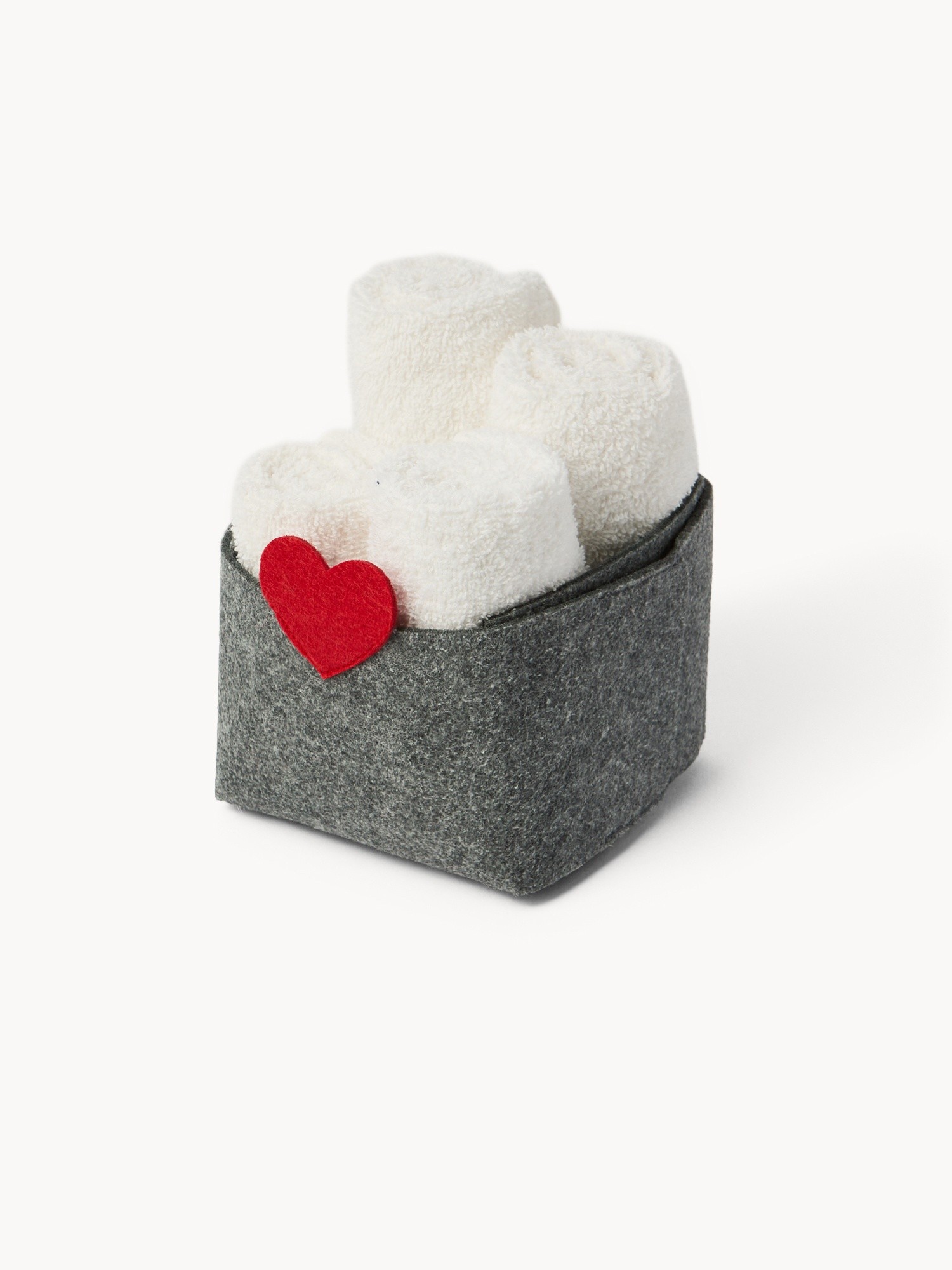 Cestino in feltro con 4 lavette tinta unita