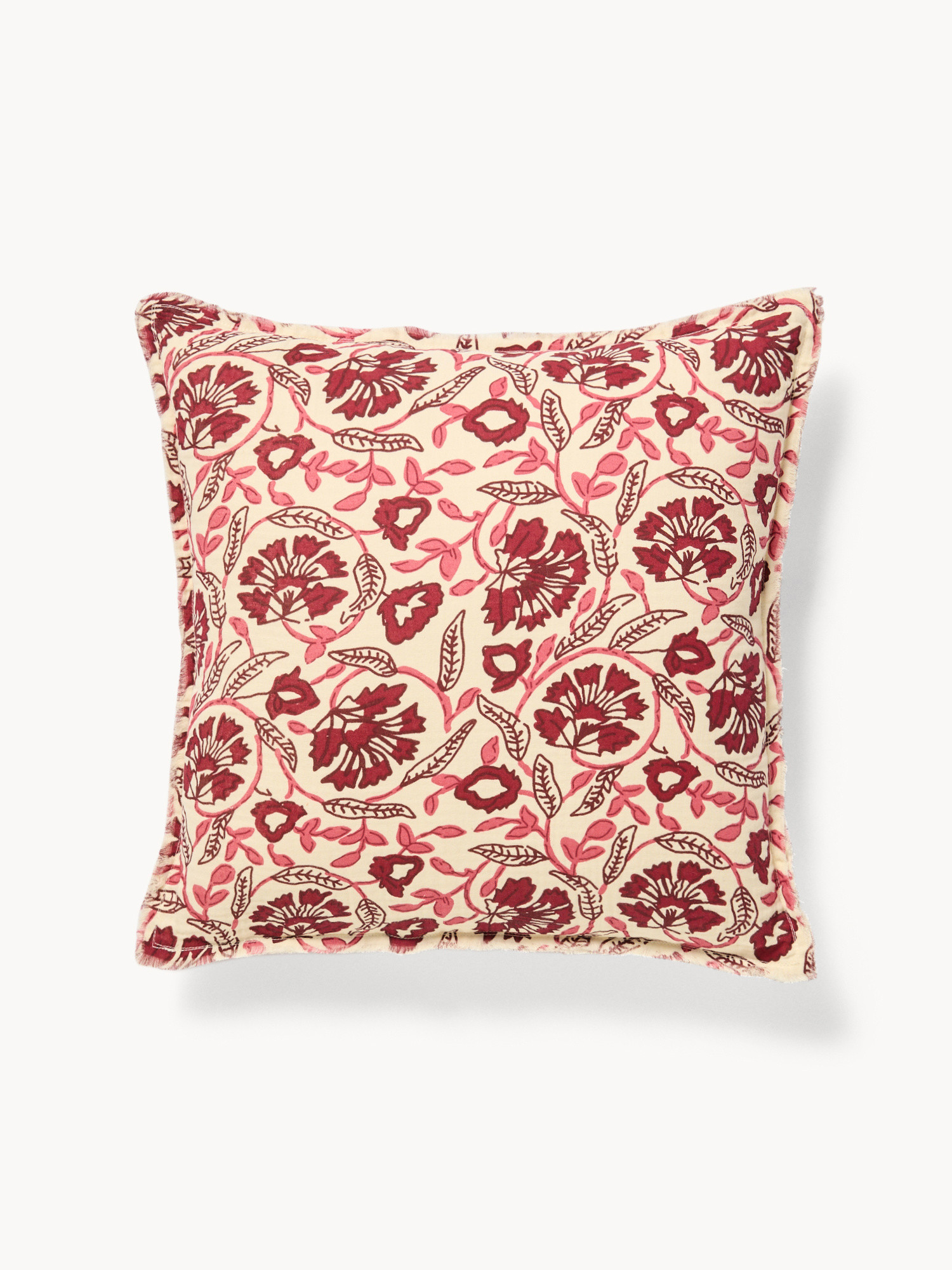 Cuscino 50x50 in garza di cotone stampato con frangette
