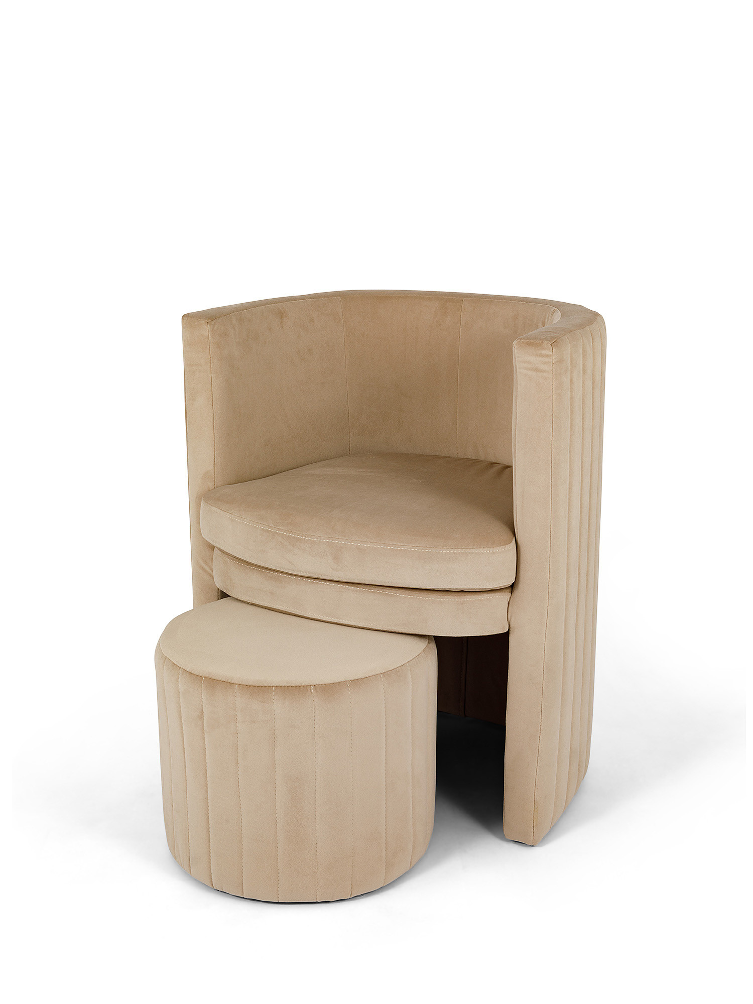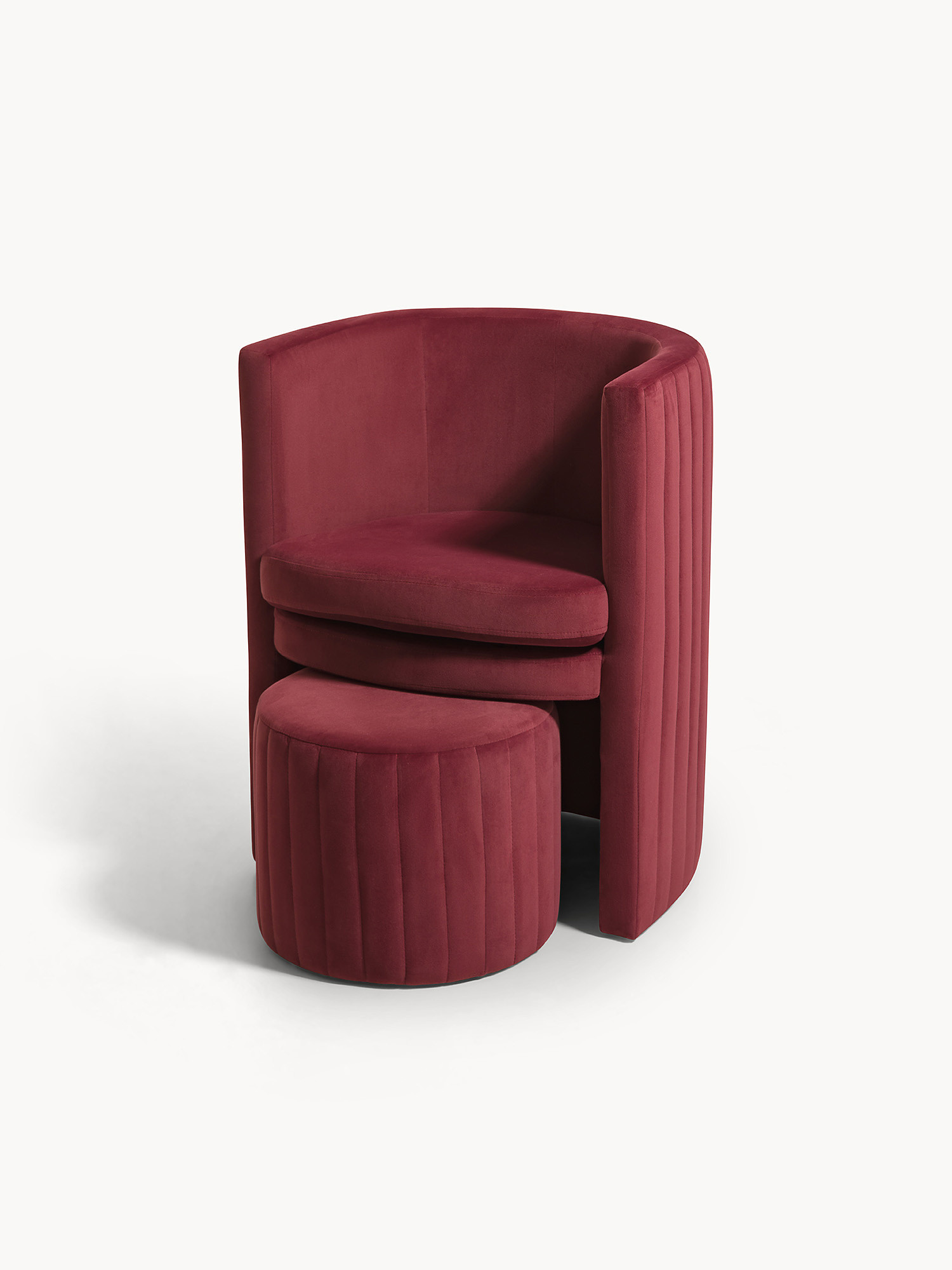 Set poltrona e sgabello in velluto Round