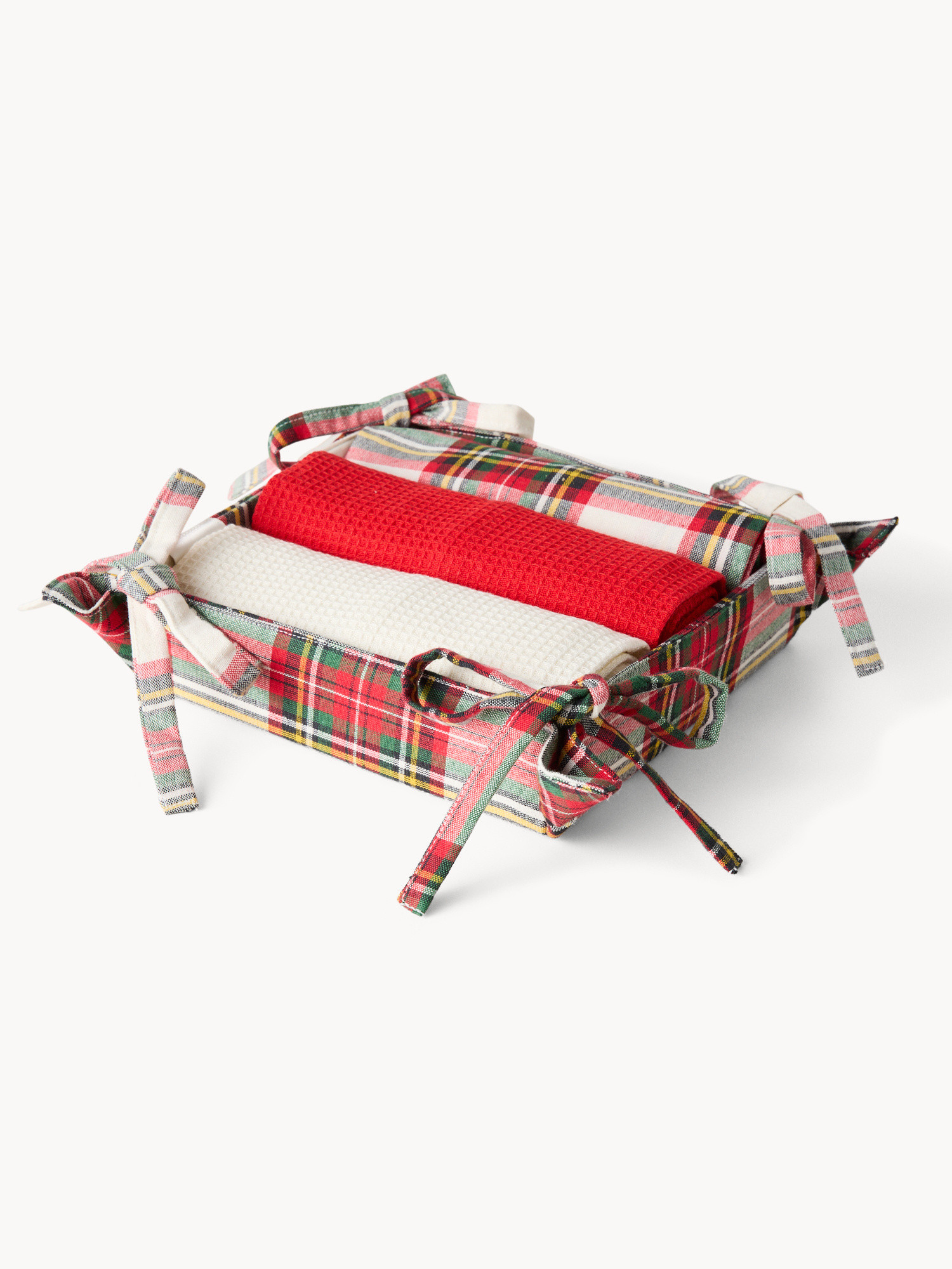 Grembiule a pettorina tartan in puro cotone tinto filo