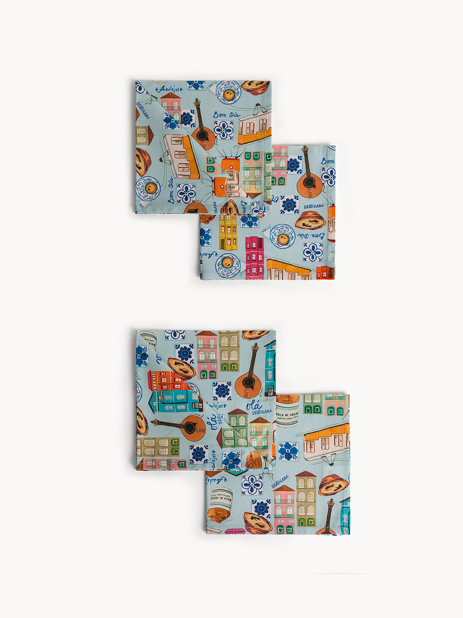 Set 4 tovaglioli in panama di cotone stampa Portogallo