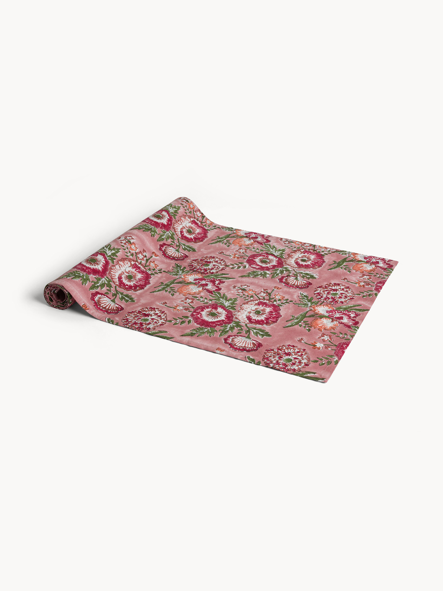 Runner in puro cotone con stampa block print floreale
