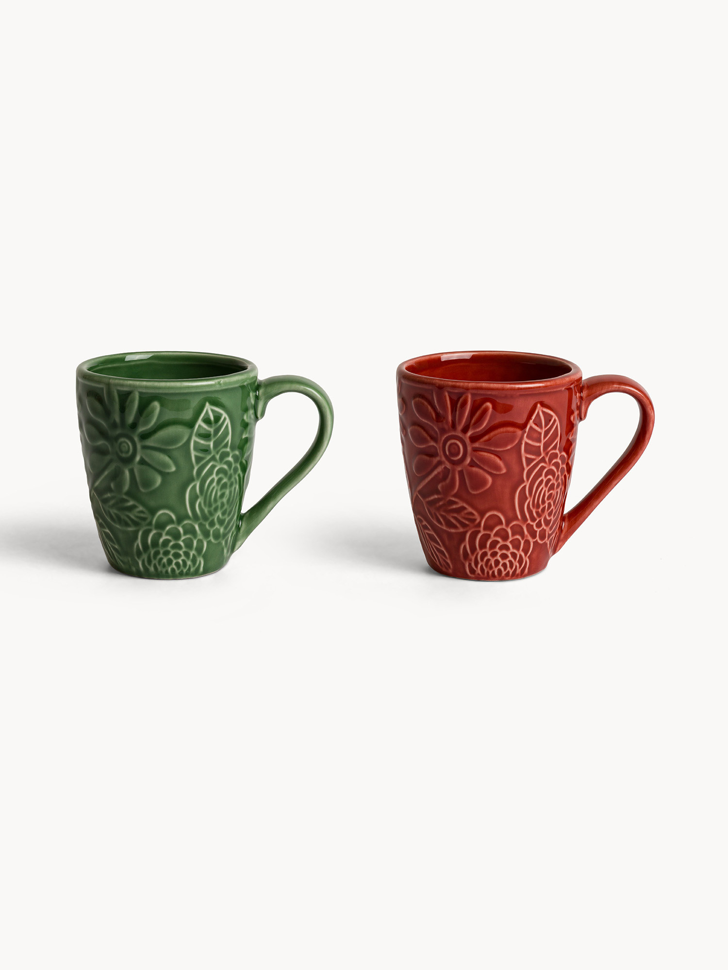 Mug in stoneware con fiori in rilievo