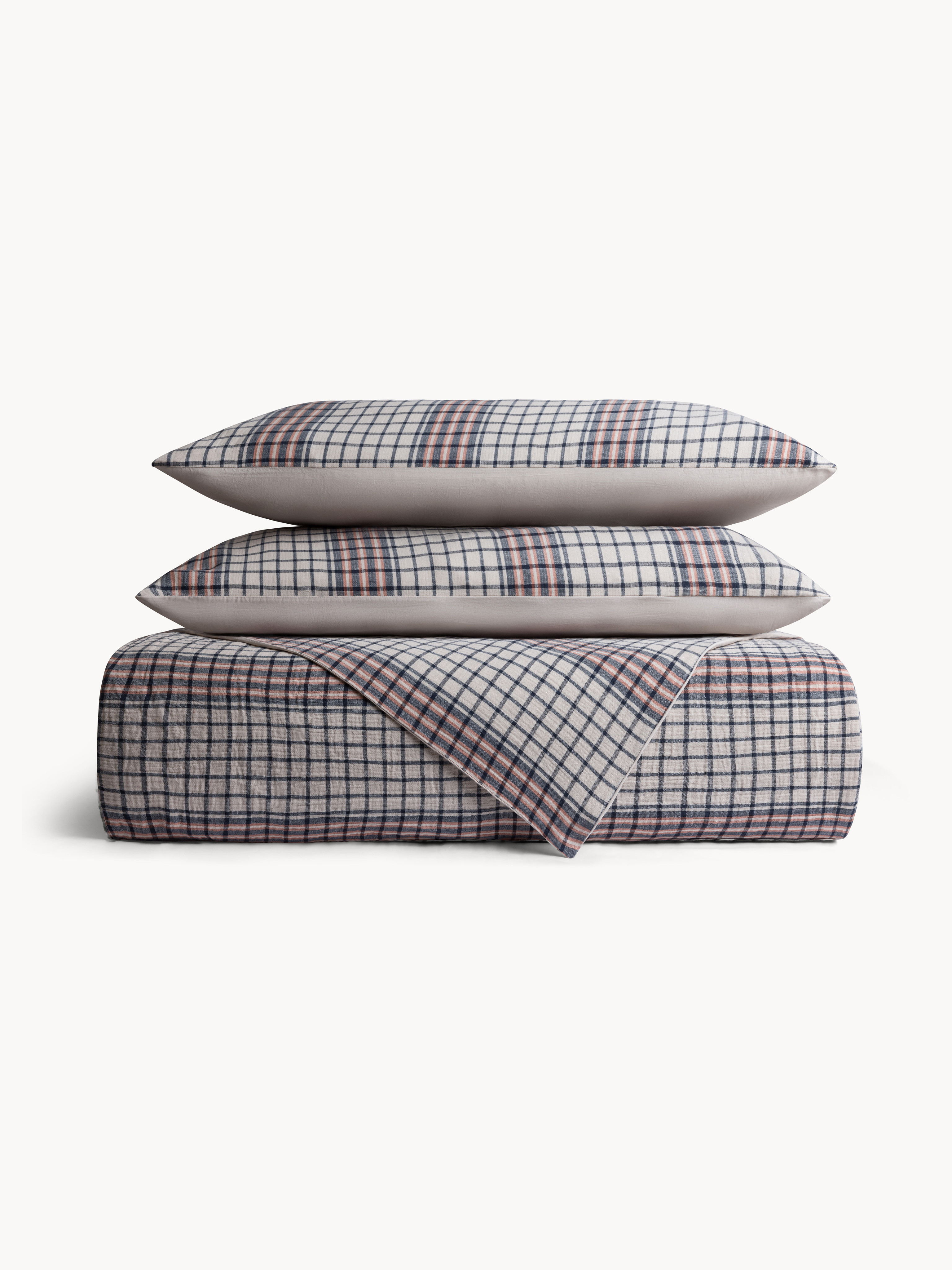 Copripiumino in cotone lavato lavorazione jacquard a quadri