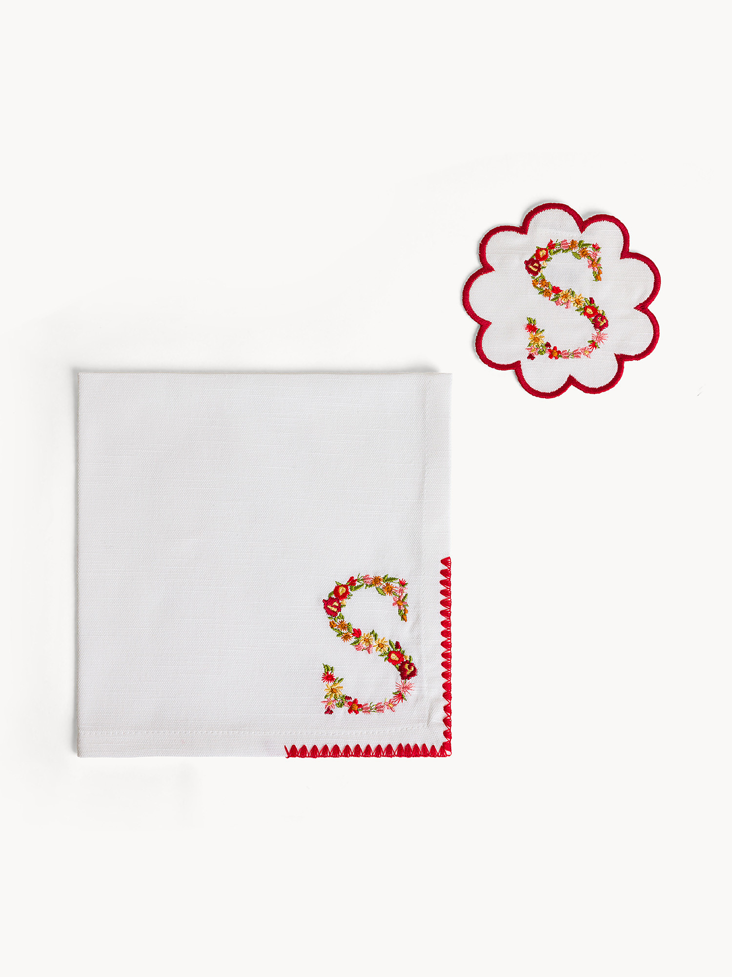 Set tovagliolo e sottobicchiere lettera ricamata S