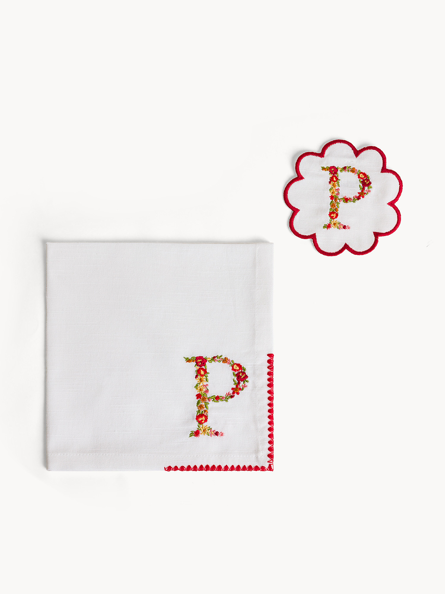 Set tovagliolo e sottobicchiere lettera ricamata P