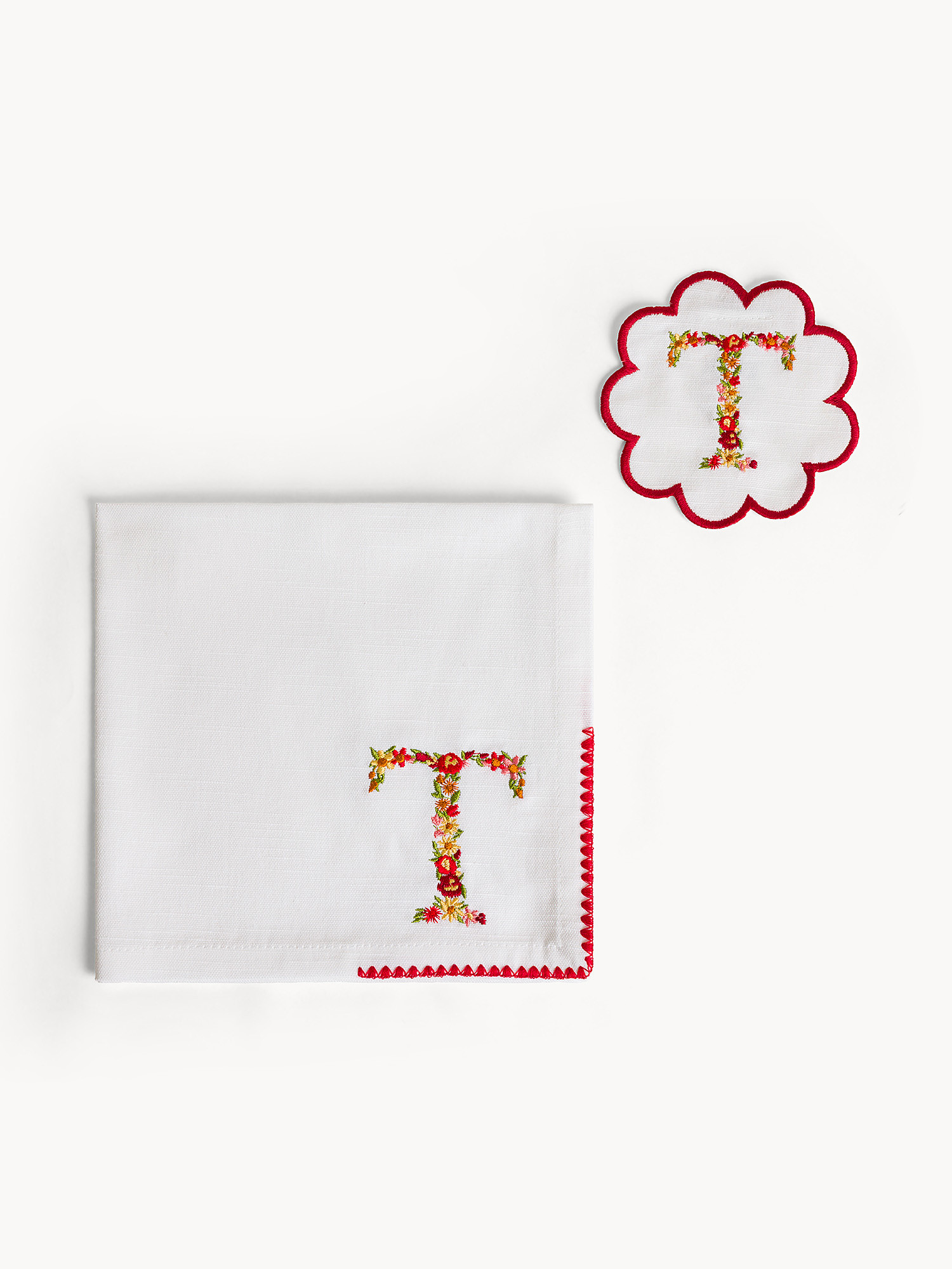 Set tovagliolo e sottobicchiere lettera ricamata T