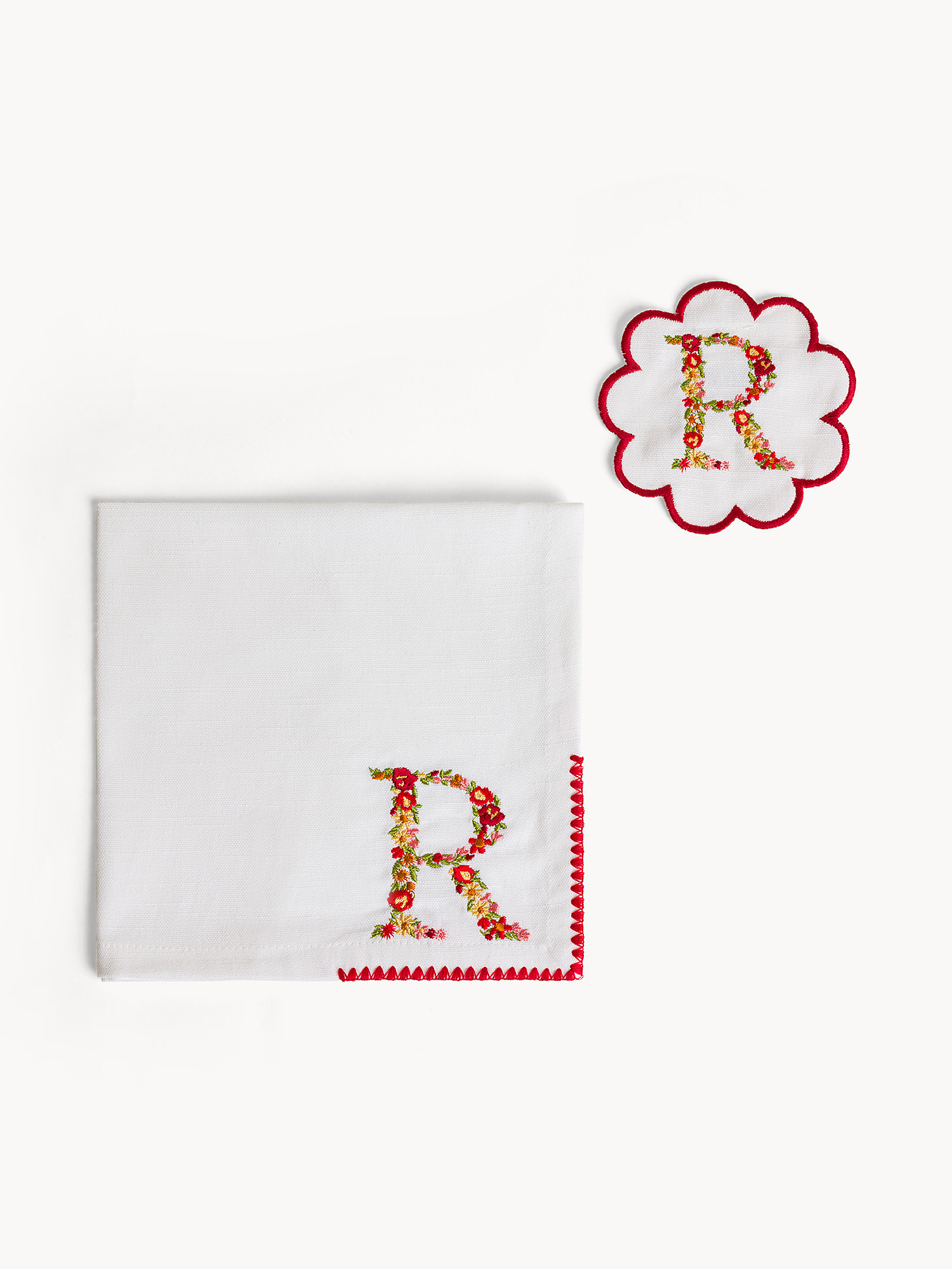 Set tovagliolo e sottobicchiere lettera ricamata R
