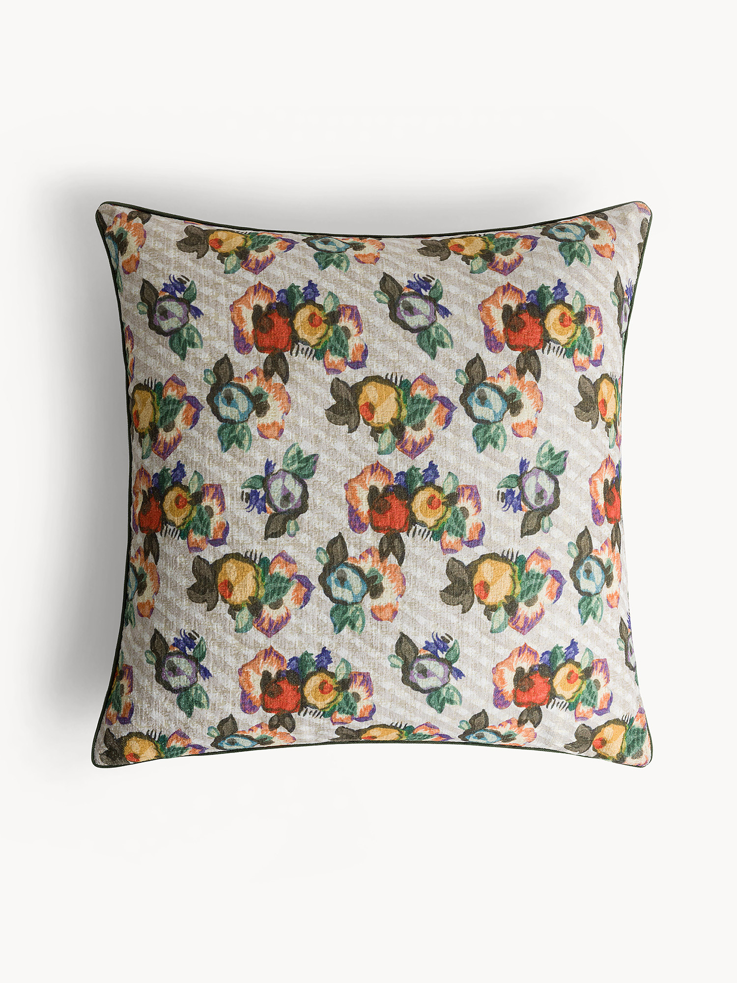 Cuscino 45x45 cm in velluto con stampato e piping a contrasto