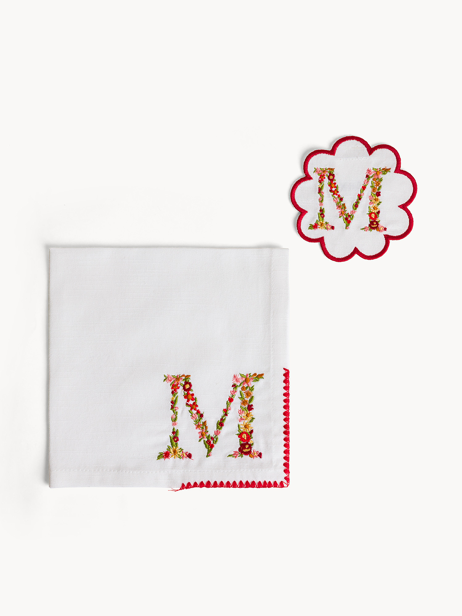 Set tovagliolo e sottobicchiere lettera ricamata M
