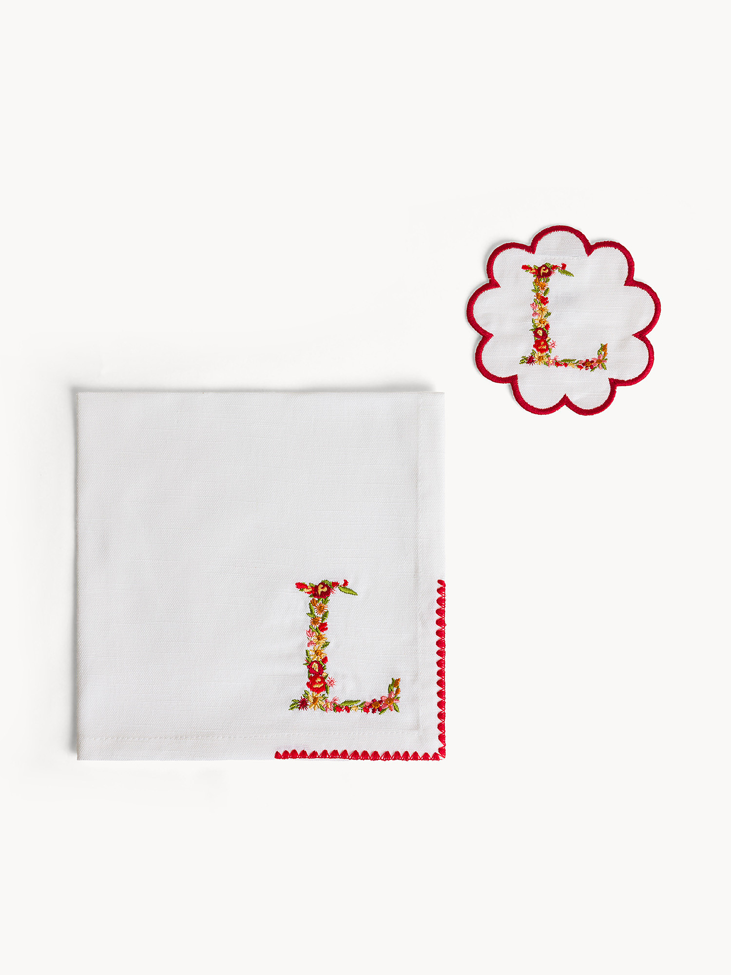Set tovagliolo e sottobicchiere lettera ricamata L