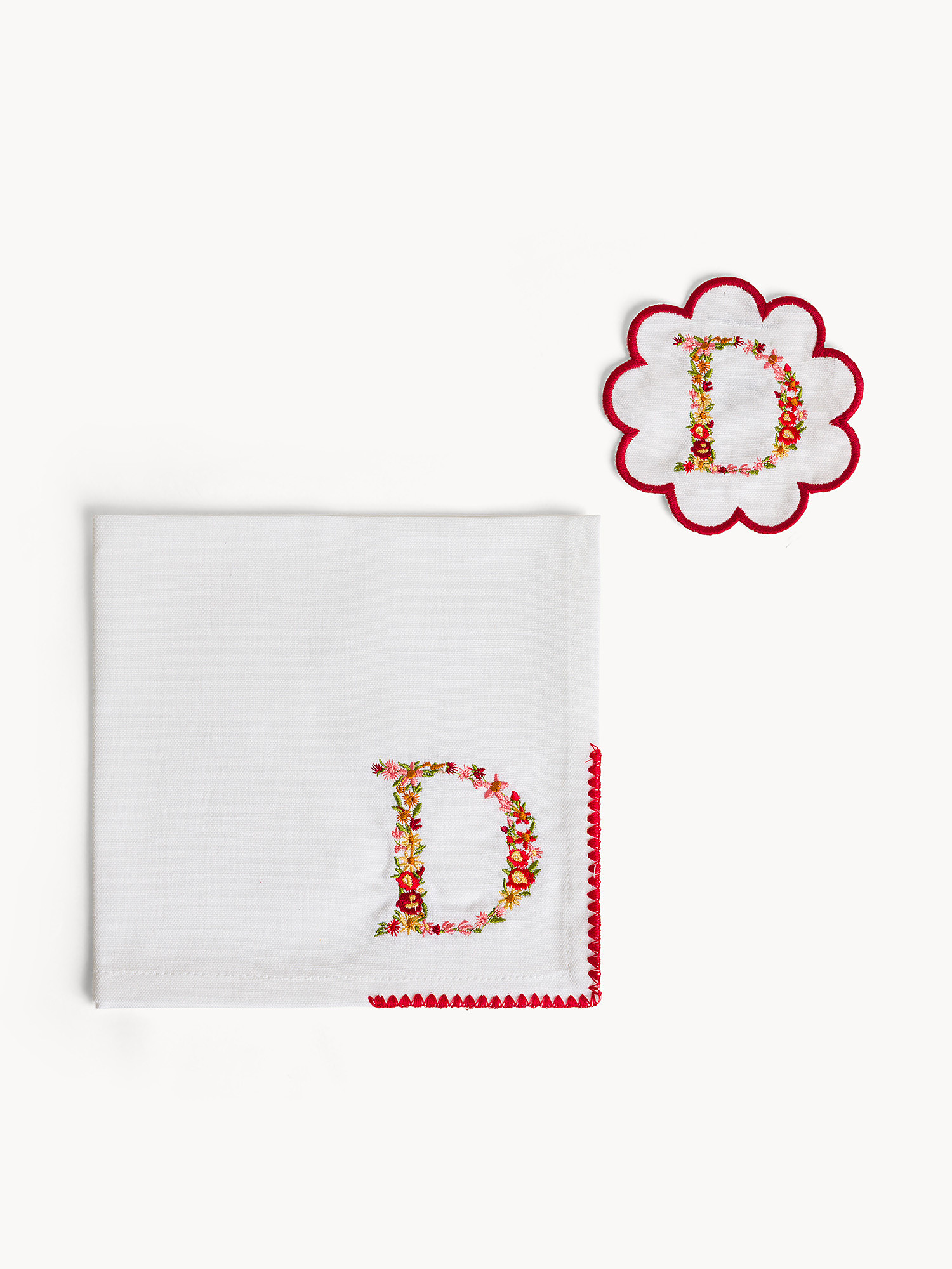 Set tovagliolo e sottobicchiere lettera ricamata D