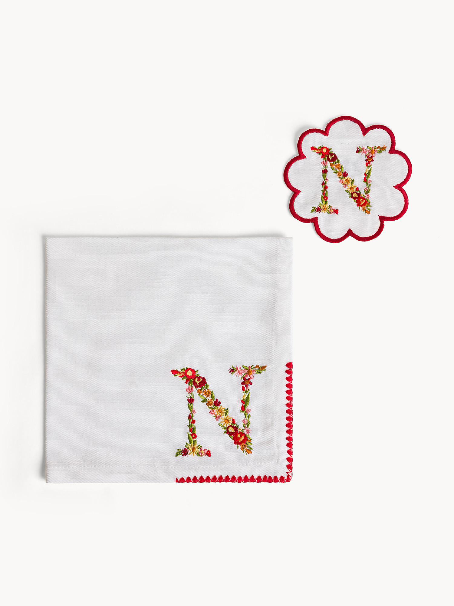 Set tovagliolo e sottobicchiere lettera ricamata N