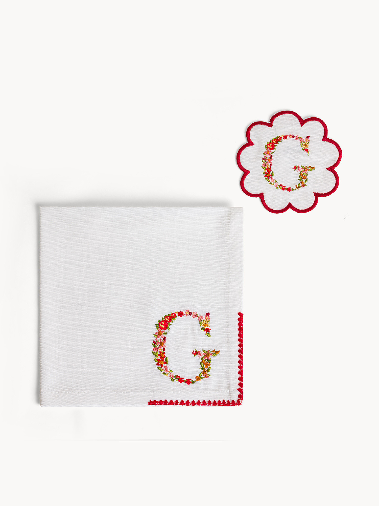 Set tovagliolo e sottobicchiere lettera ricamata G