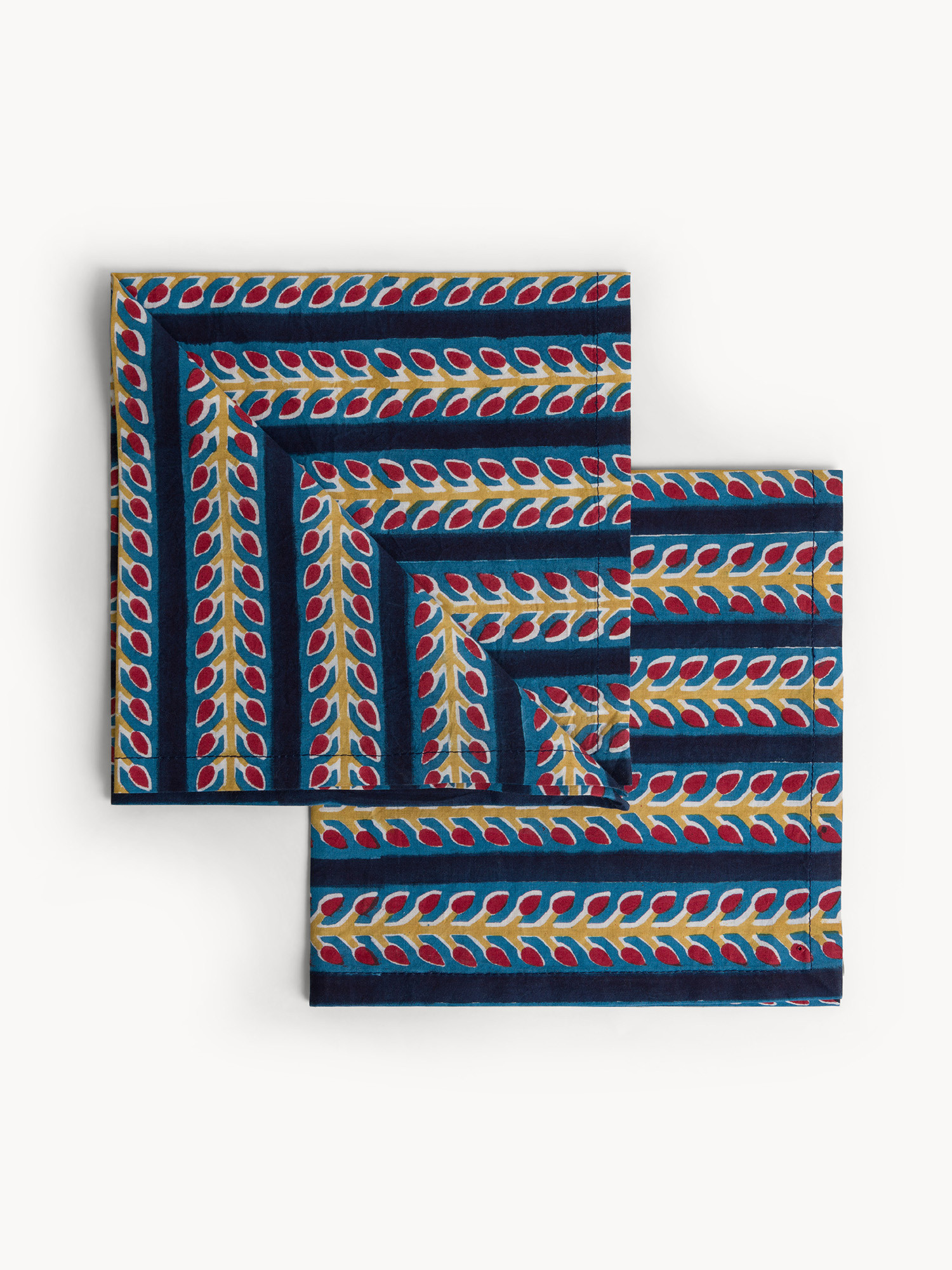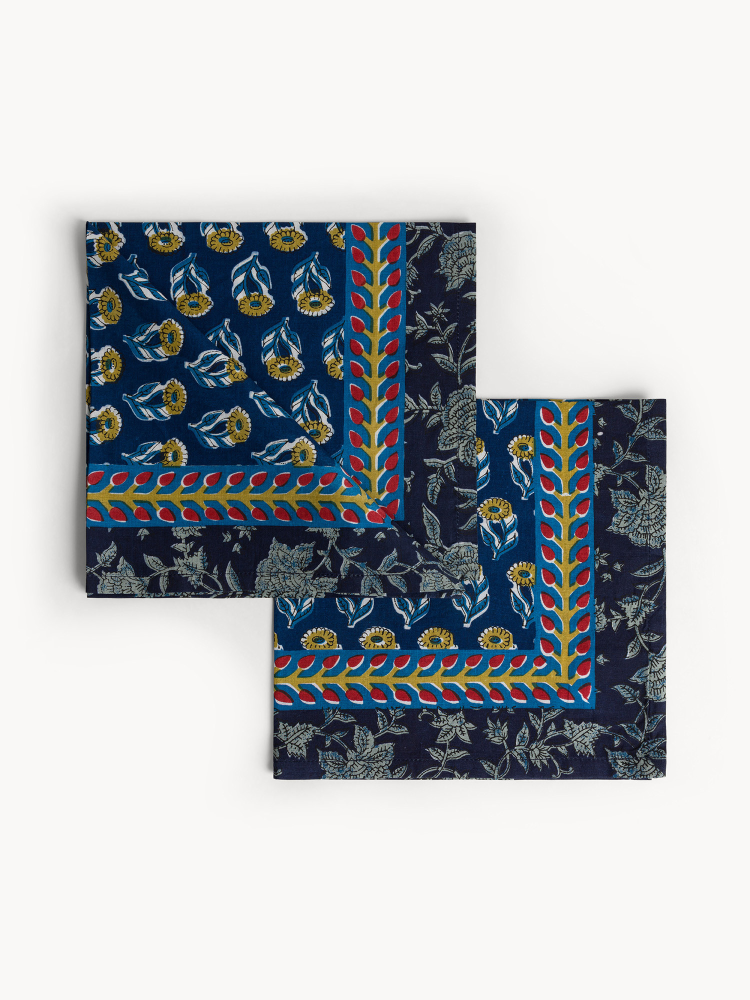 Set di 2 tovaglioli in puro cotone stampa block print