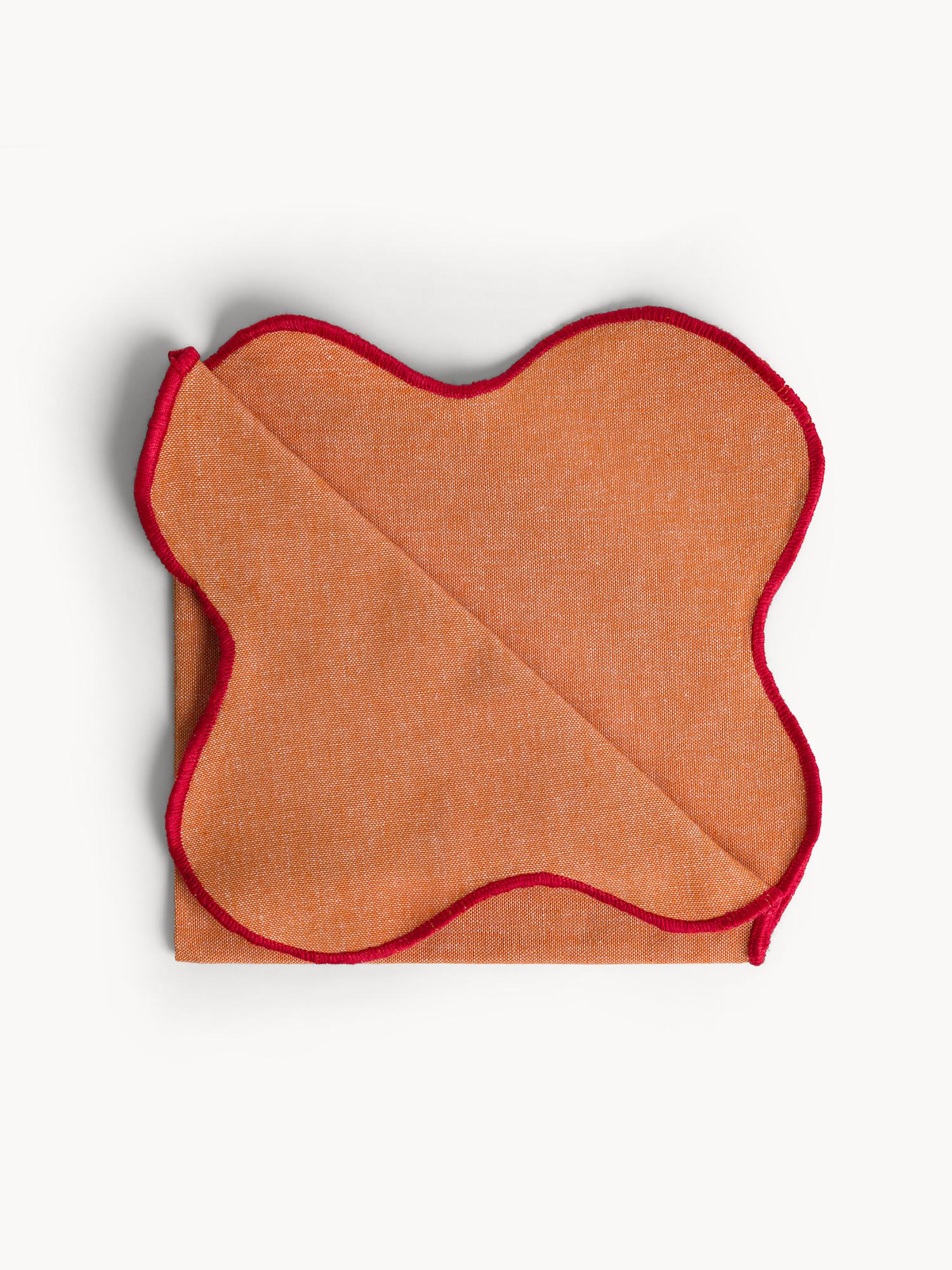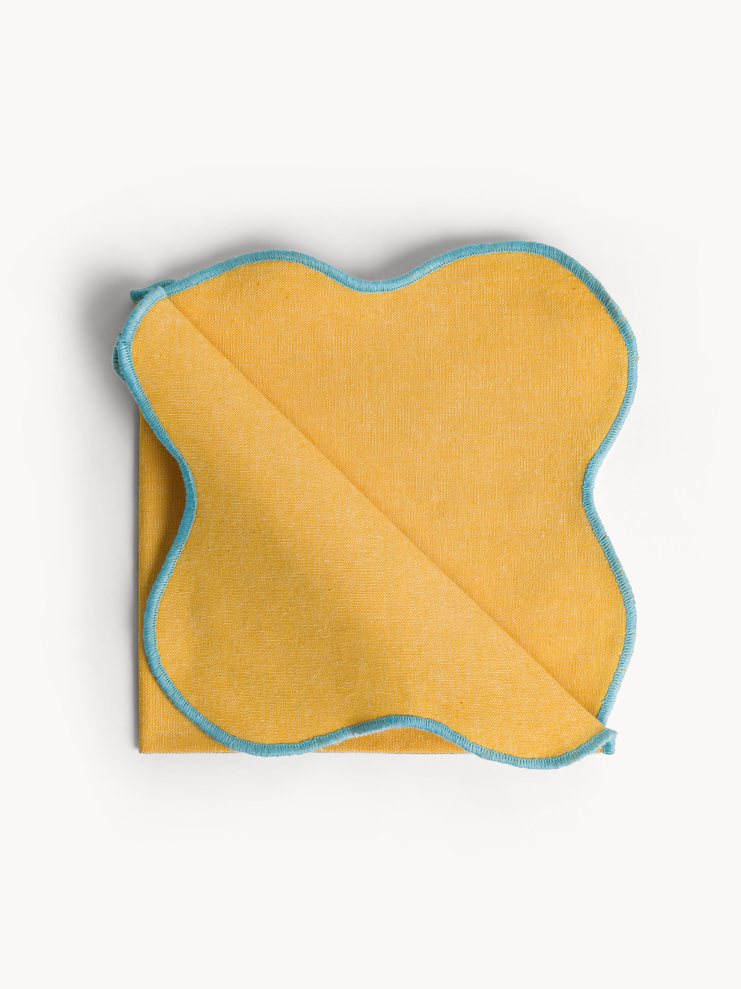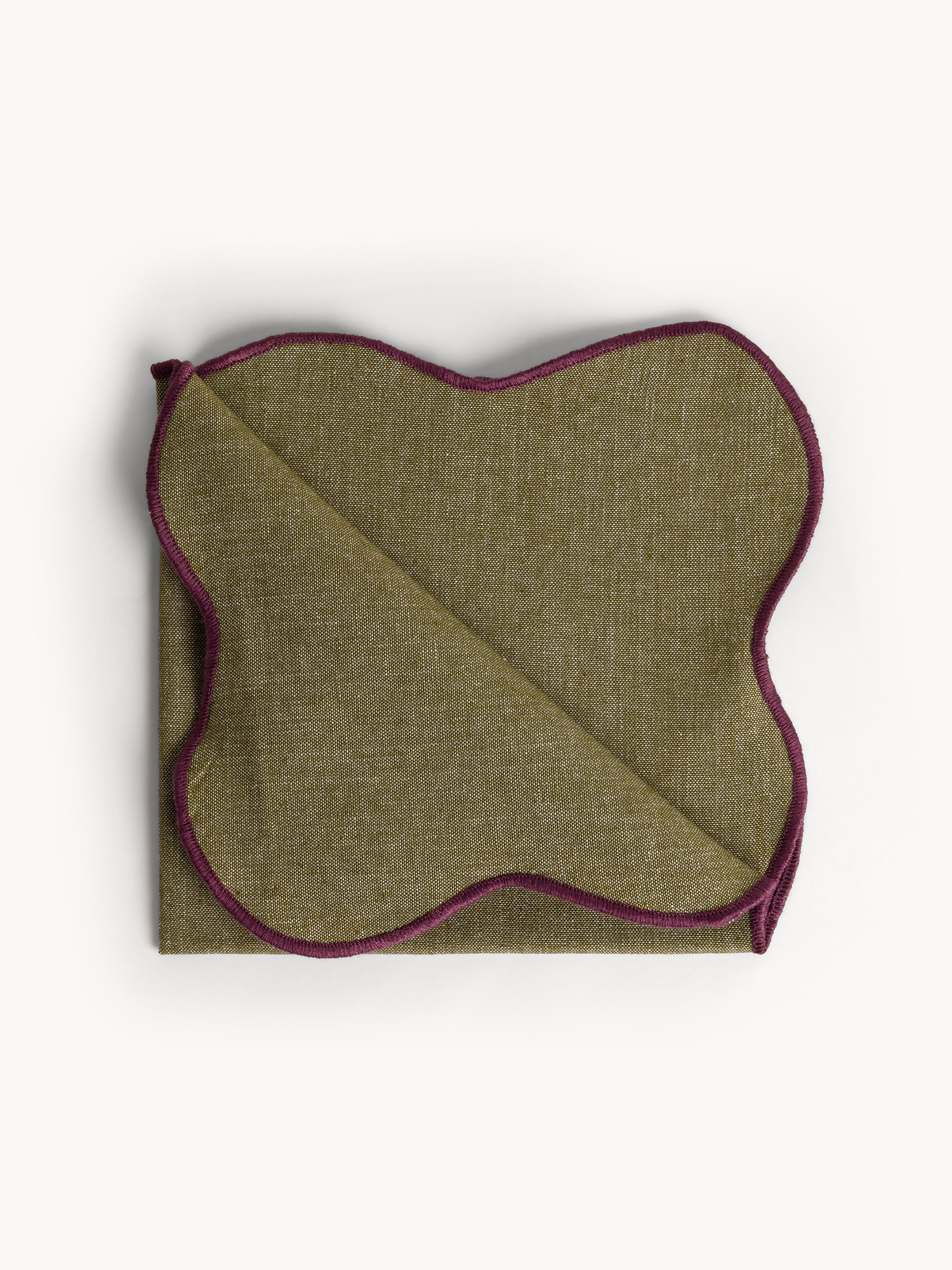 Tovagliolo in cotone con bordi smerlati e overlock